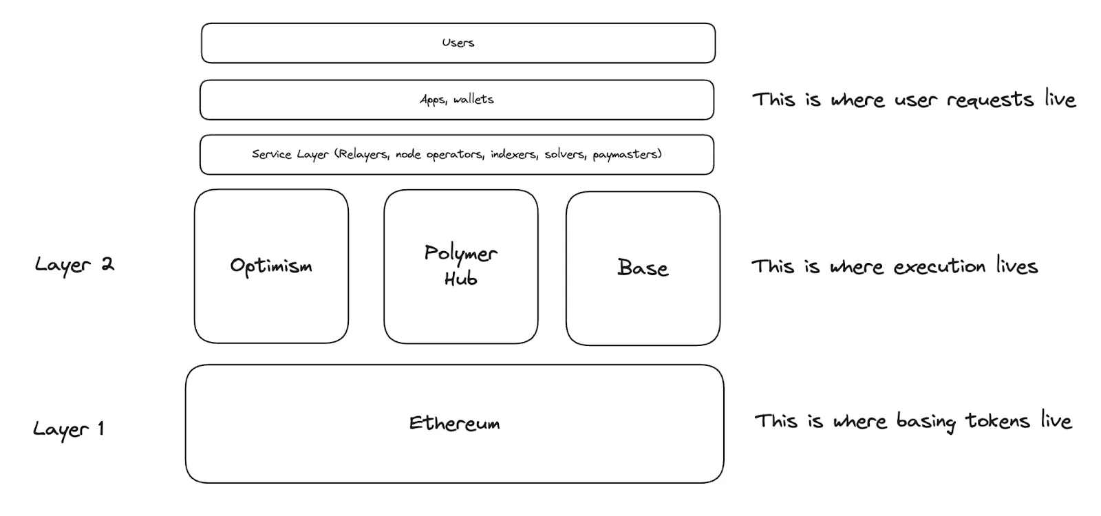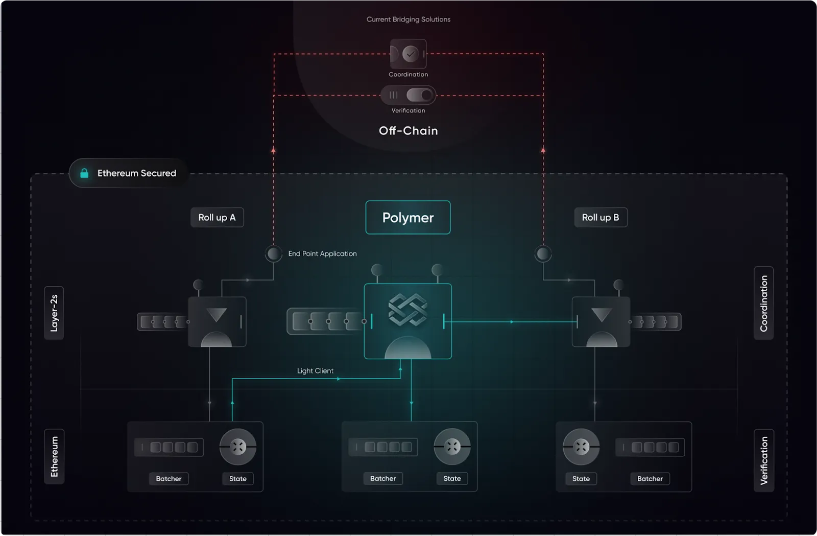 - One rollup, one client: Once a rollup state exists on Polymer, the entire network is enabled, unlike point to point connections.