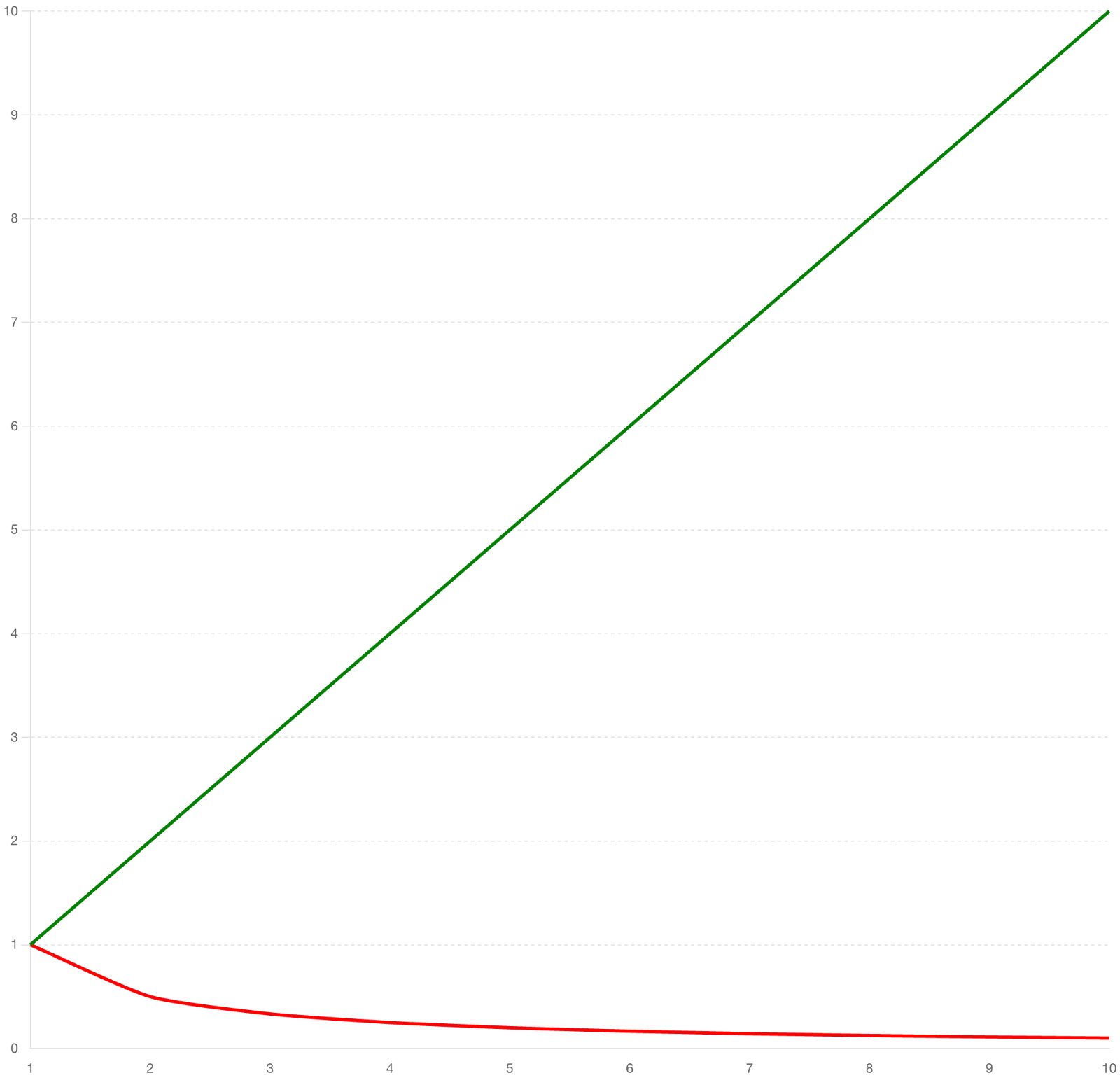 red = connections with Polymer Hub (y = 1/x)