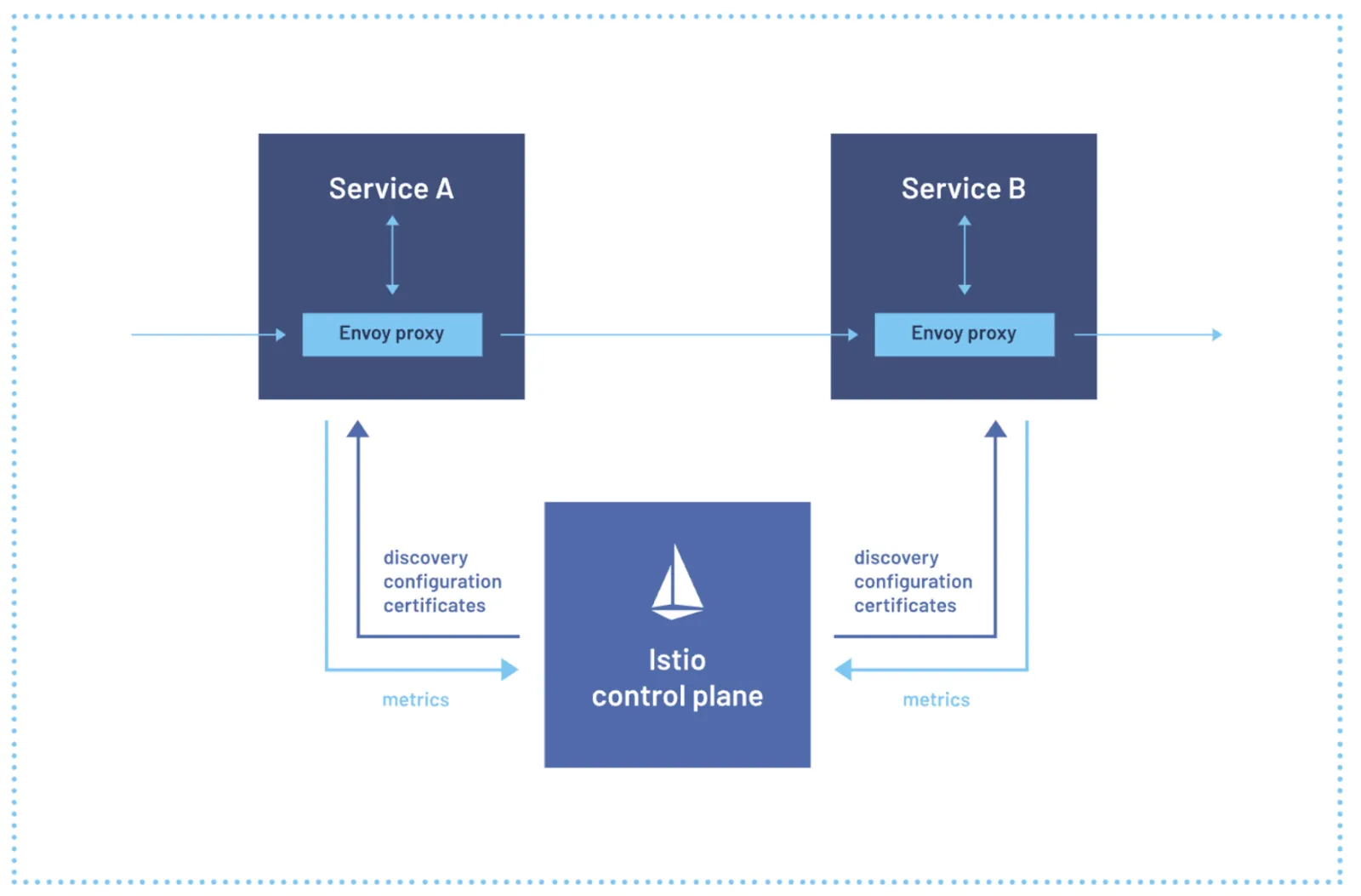 It uses something called Envoy proxies, which are like gatekeepers for each microservice, managing who gets to talk to who and how. These proxies follow rules set by developers over Istio to control the flow of data, making sure everything runs smoothly and securely.