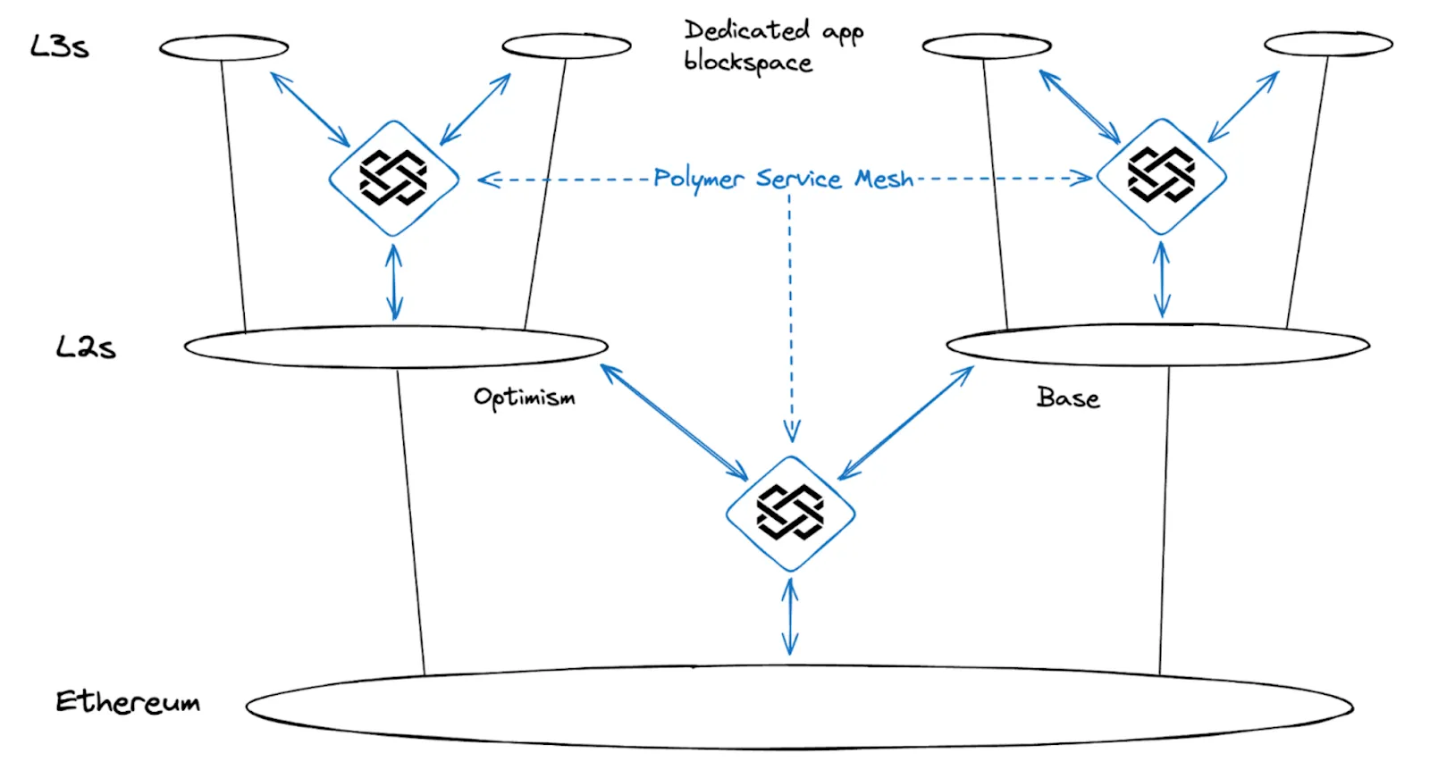 Envision a service mesh that spans across all layers of Ethereum, with each L2 or L3 hosting its own Polymer control plane. With every layer getting its own instance of a Polymer, each control plane inherits finality or re-org resistance from the shared settlement.