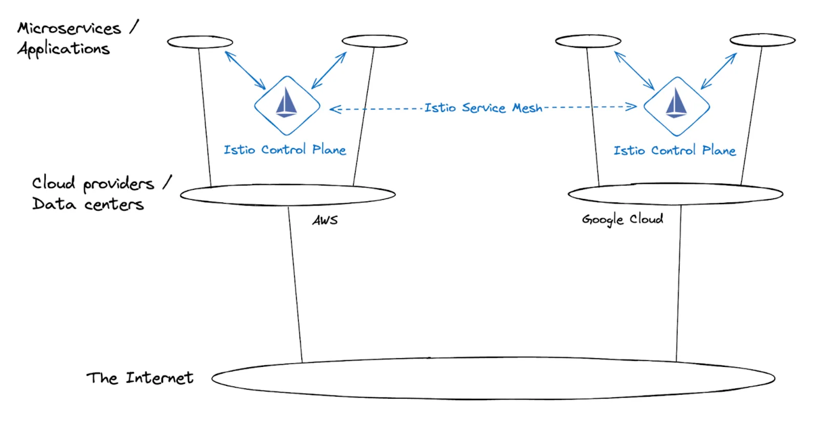 You can set up Istio in different places, like various cloud services or data centers, and it will work the same in each one.