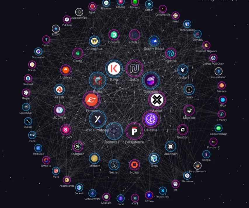 A snapshot from Map of Zones shows that any chain currently joining the IBC network is forced to establish a connection with every other chain of interest one by one. Consequently, IBC as an interoperability network has been continuously limited to exponential time complexity.